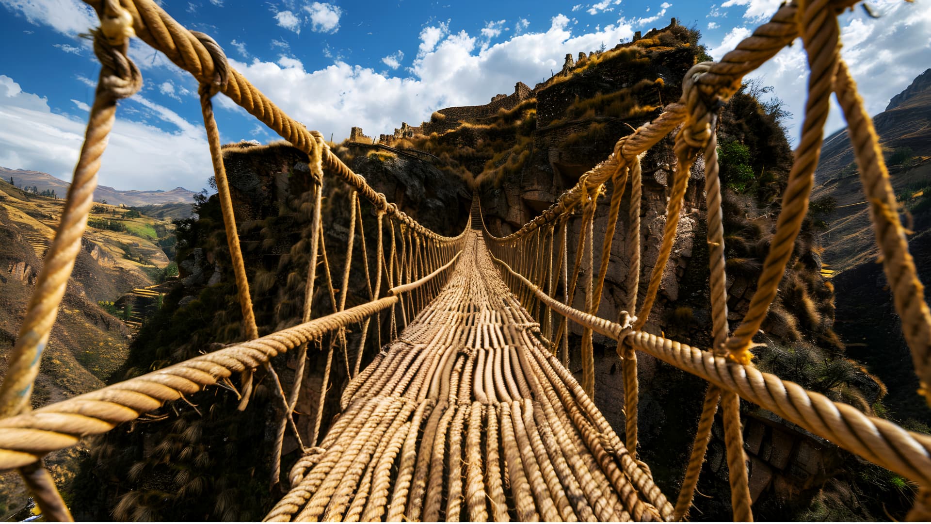 Q’eswachaka es el último puente colgante inca que aún se mantiene en uso. Está tejido íntegramente a mano con ichu y es reconstruido cada año por las comunidades locales siguiendo una antigua tradición reconocida por la UNESCO como Patrimonio Cultural Inmaterial de la Humanidad.
