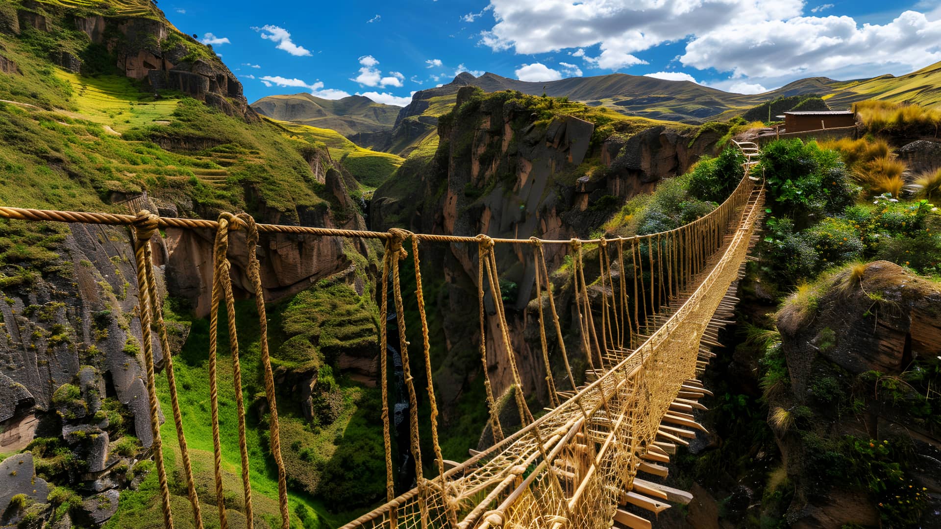 • 11:30 AM – Puente Q’eswachaka: Llegada al cañón del río Apurímac. Visita guiada para aprender sobre el proceso anual de tejido y, para los más valientes, tiempo para cruzar el puente inca.