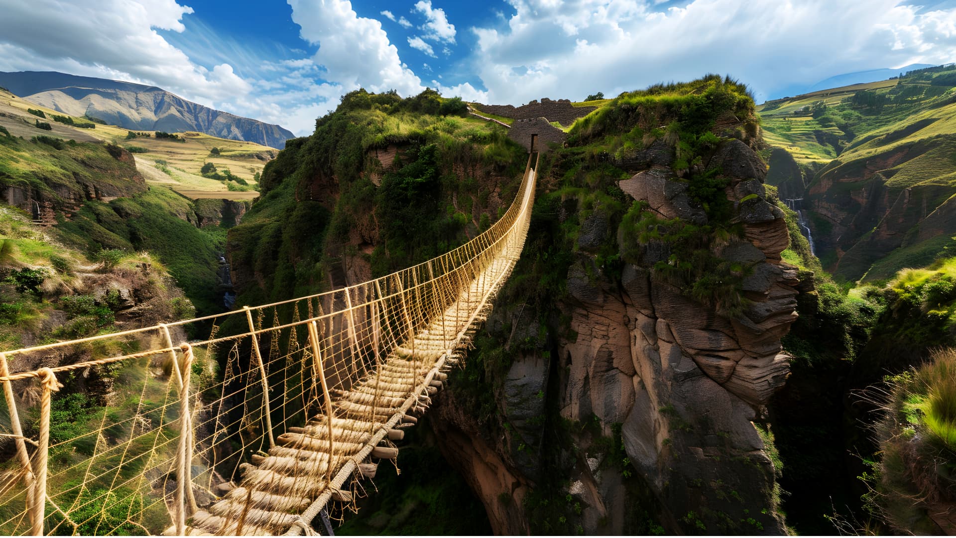 El Puente Inca Q’eswachaka es uno de los legados vivos más extraordinarios de la civilización inca. Suspendido sobre el profundo cañón del río Apurímac, este puente tejido a mano está hecho íntegramente con ichu natural, preservando una técnica ancestral que se ha mantenido inalterada durante más de 500 años.